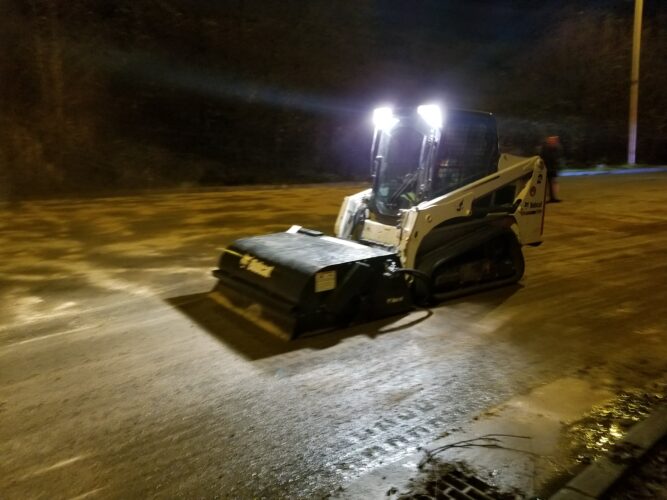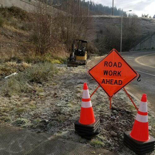 The street cleanup was an extensive process, with the cleanup spanning 4 lanes and 150 feet in length. Our teamwork quickly though, cleaning up all rocks, mud and accident debris to our special on scene dump trailer. We then cleaned up the fuel spill with granular absorbent materials, bio-enzymatic hydrocarbon treatment and a specialized broom attached to our compact track loader. During this time, access to E. Valley Access Road was closed, so our team worked quickly to clean the debris and reopen the roadways.