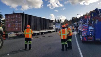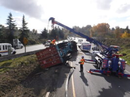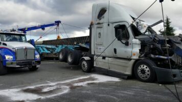 On November 9, 2018, a semi-truck accident occurred in Tukwila, WA, which involved a trapped driver and a fully loaded shipping container. Both Team Pro-Tow and Team Pro-Enviro responded to the call for this incident.