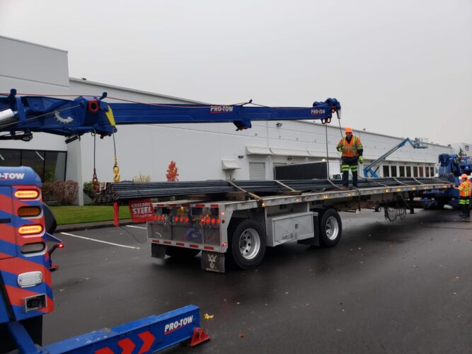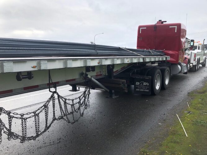 Fortunately, nobody was injured by the heavy rebar. The semi-truck, however, did require special equipment, managed by specially trained professionals, to handle this difficult reload. We completed a scene assessment before we went to work to safely handle this incident.