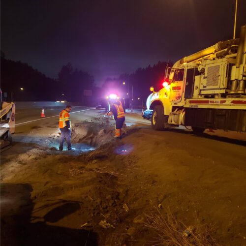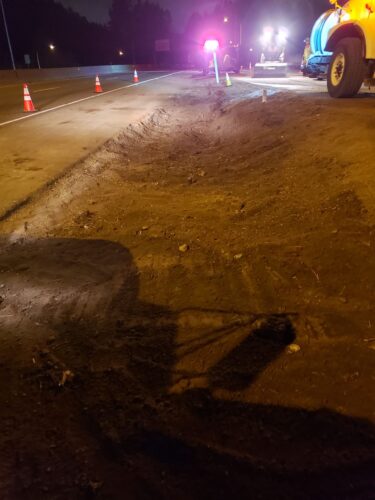With the container safely loaded and ready for transport, the DOE and WSDOT requested an extensive cleanup and spill recovery of the site. We began with site excavation and also called for a sublet vendor evacuator. We collected soil samples for later review and then returned all equipment to its original condition and location.