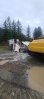 The tires of the truck and trailer were also wholly burnt off, and debris and burned pieces got into a nearby storm drain. This accident recovery required extensive cleanup, and Team Pro-Enviro was ready to work on it!