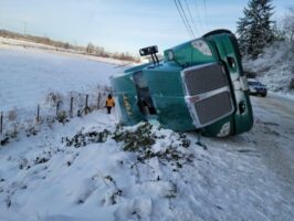On December 27, 2021, another incident with a load of potatoes required extensive semi-truck cleanup—a semi-truck hauling a full load of taters overturned near Sumner, WA. The truck went into the ditch, and its potato load went in with it, scattering mashed potatoes at the scene.