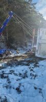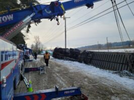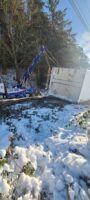The rolled-over semi-truck needed lifting out of the ditch. Team Pro-Tow handled this semi-truck accident cleanup and recovery. First, we cautiously rigged the crane ropes around the semi-truck and started drawing it out of the ditch. Upon reaching stable and even terrain, we detached the rigging from the front of the trailer. Then, we arranged air cushions along the roadway and positioned them beneath the truck’s underside. Finally, we re-rigged the semi-truck around the rear to haul it forward and restore it to an upright position.
