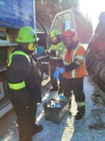 Unfortunately, the fuel tank had suffered damage from the accident. It required fuel cleanup on the scene!