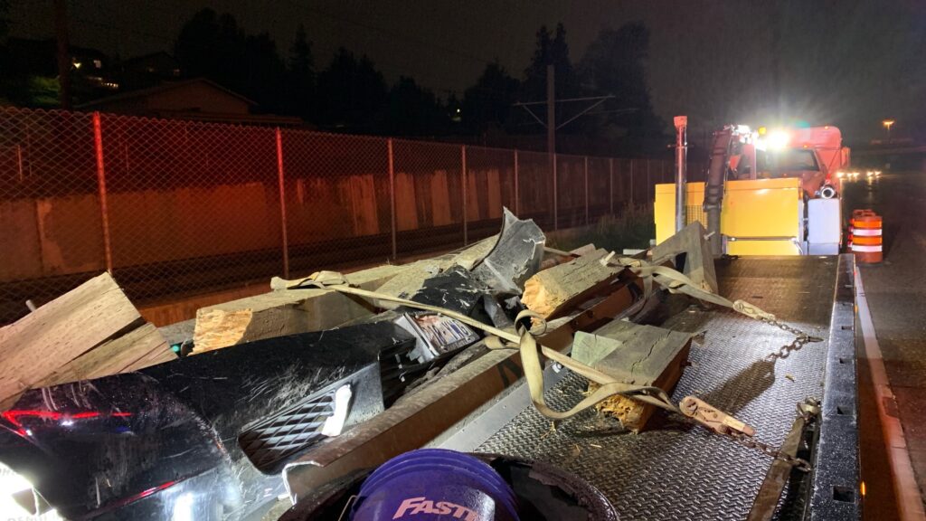 On June 11, 2021, a commercial box truck went into the ditch and climbed up the embankment. It then rolled over onto the driver’s side of the truck. The accident smashed the cab and the fuel tank, causing a significant spill in the ditch and surrounding area. The accident was blocking one side of the SR167 at Tukwila, WA and required immediate truck and spill recovery.