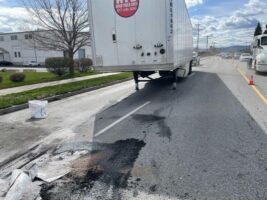 On April 1, 2022, Team Pro-Enviro responded to a call about a significant fuel spill. This was a serious accident involving a semi-truck and trailer and a bus, certainly no joke. When we arrived at the scene we discovered major damage to the fuel tank and a big mess to clean up. It was time to get to work.